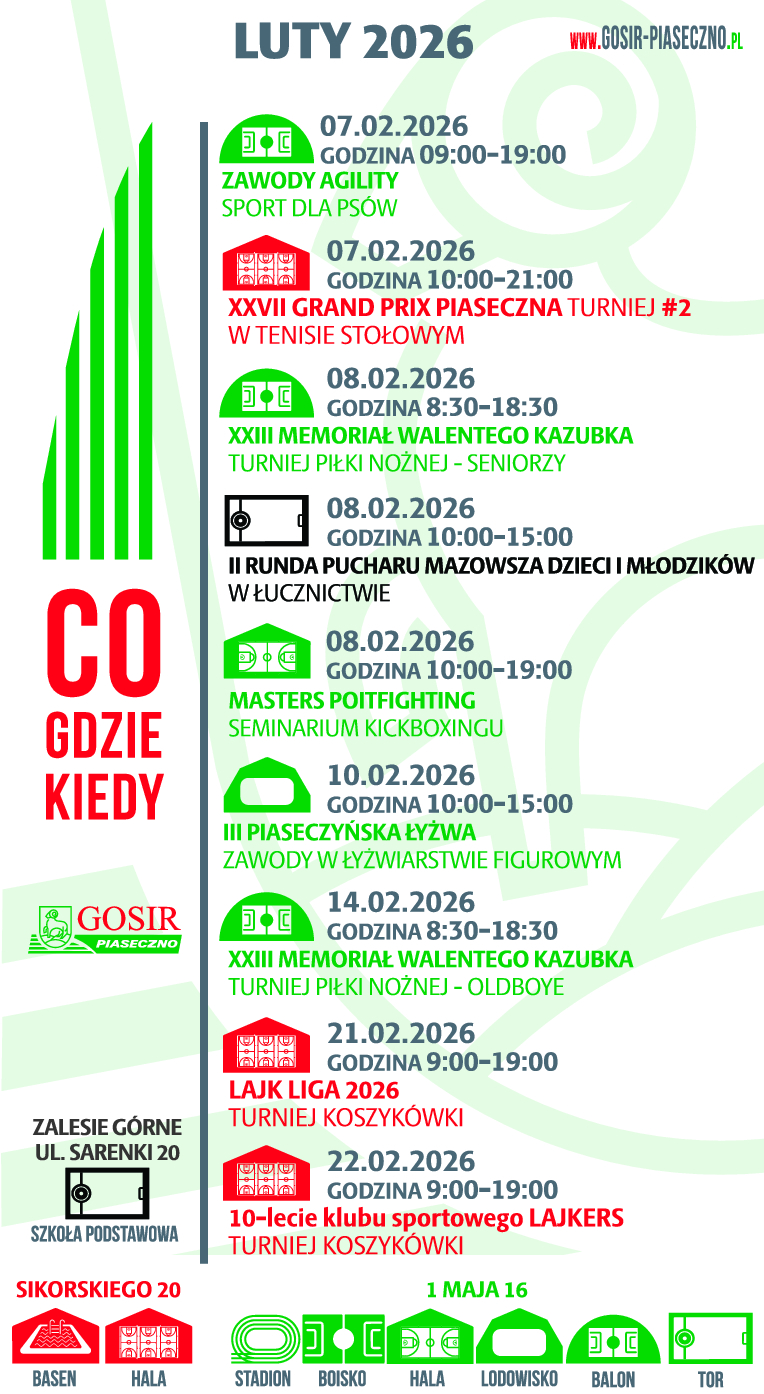 Sportowy Luty w GOSiR Piaseczno - kalendarz imprez sportowych