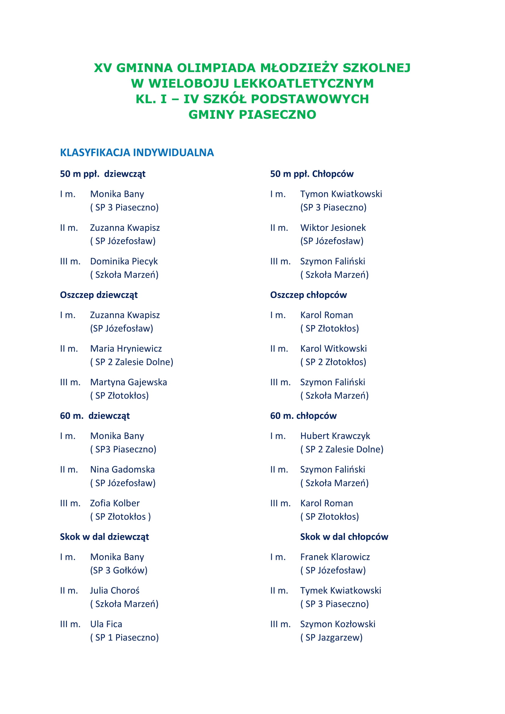 Gminy Piaseczno w wieloboju lekkoatletycznym