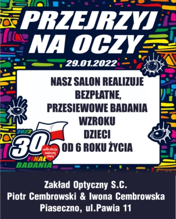 Podczas zawodów odbędzie się bezpłatne badanie wzroku dla dzieci. Badanie przeprowadzi Salon Optyczny s.c. Cembrowki Piotr, Cembrowska Iwona – w ramach akcji "Przejrzyj na Oczy" zorganizowanej przez Wielką Orkiestrę Świątecznej Pomocy.