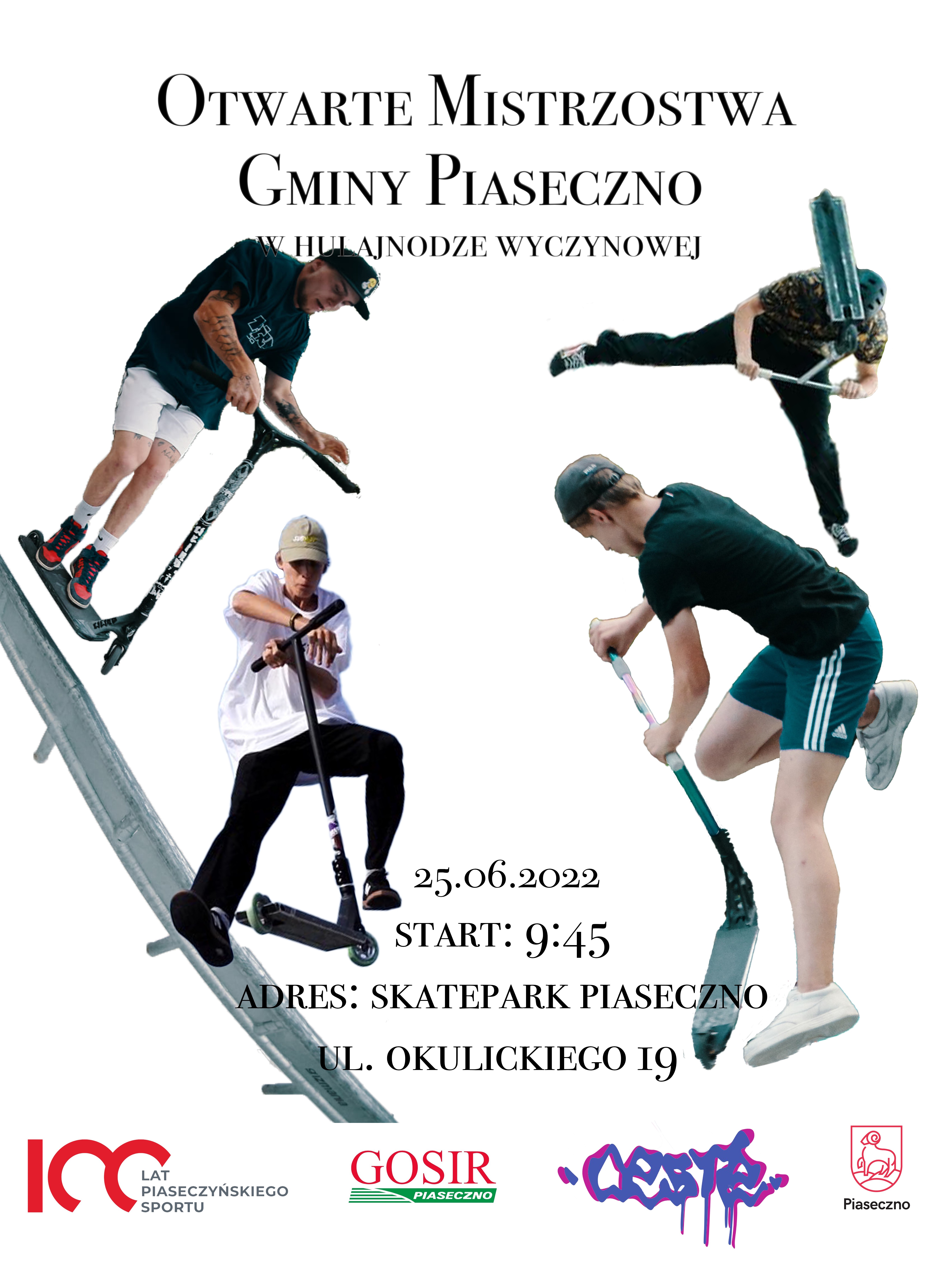 Sportowy jak i poza sportowy wpływ hulajnogi na młodych mieszkańców gminy i Powiatu Piaseczyńskiego jest ogromny o czym świadczy ilość młodzieży na skatepark'u! Z tego powodu nie może jej zabraknąć na obchodach 100 lat sportu w Piasecznie! W ramach wydarzenia zostanie wyłoniony mistrz Gminy Piaseczno w 3 kategoriach: