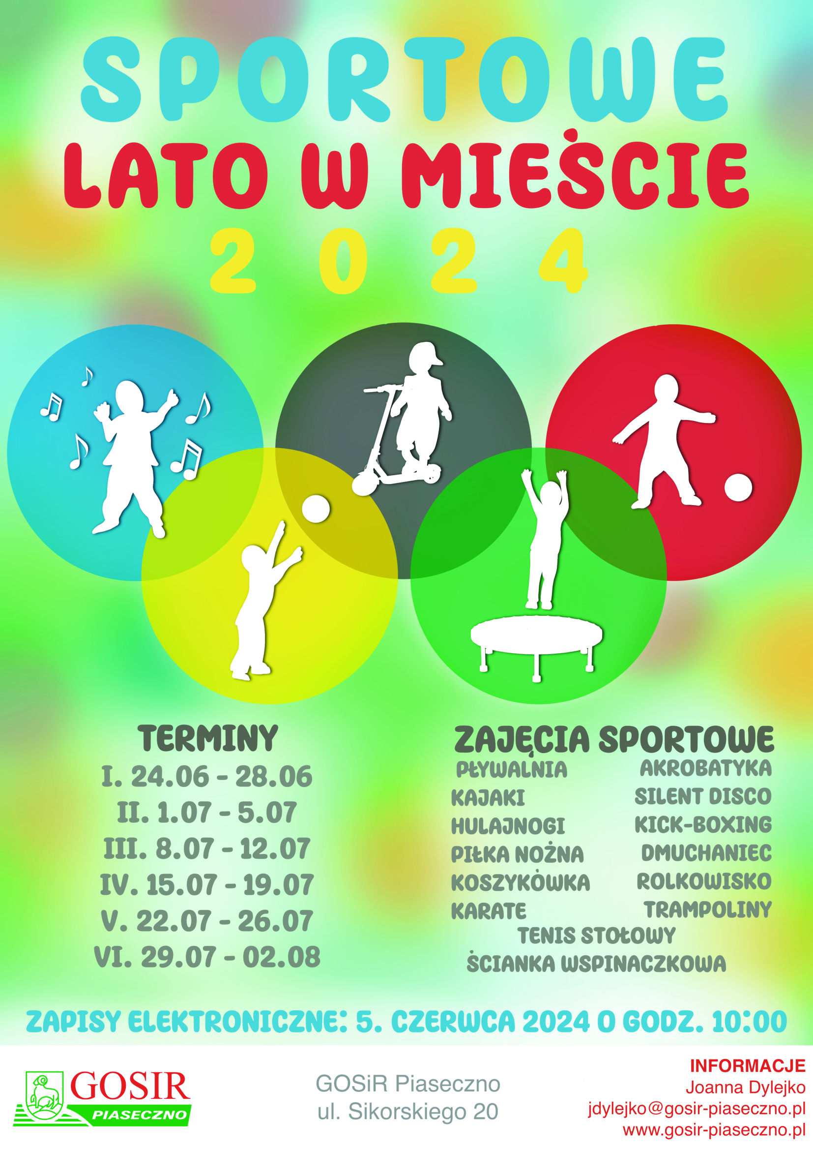Poniżej przedstawiamy plan zajęć na VI turnus (29.07-02.08.2024r.) półkolonii "Sportowe Lato w Mieście 2024".