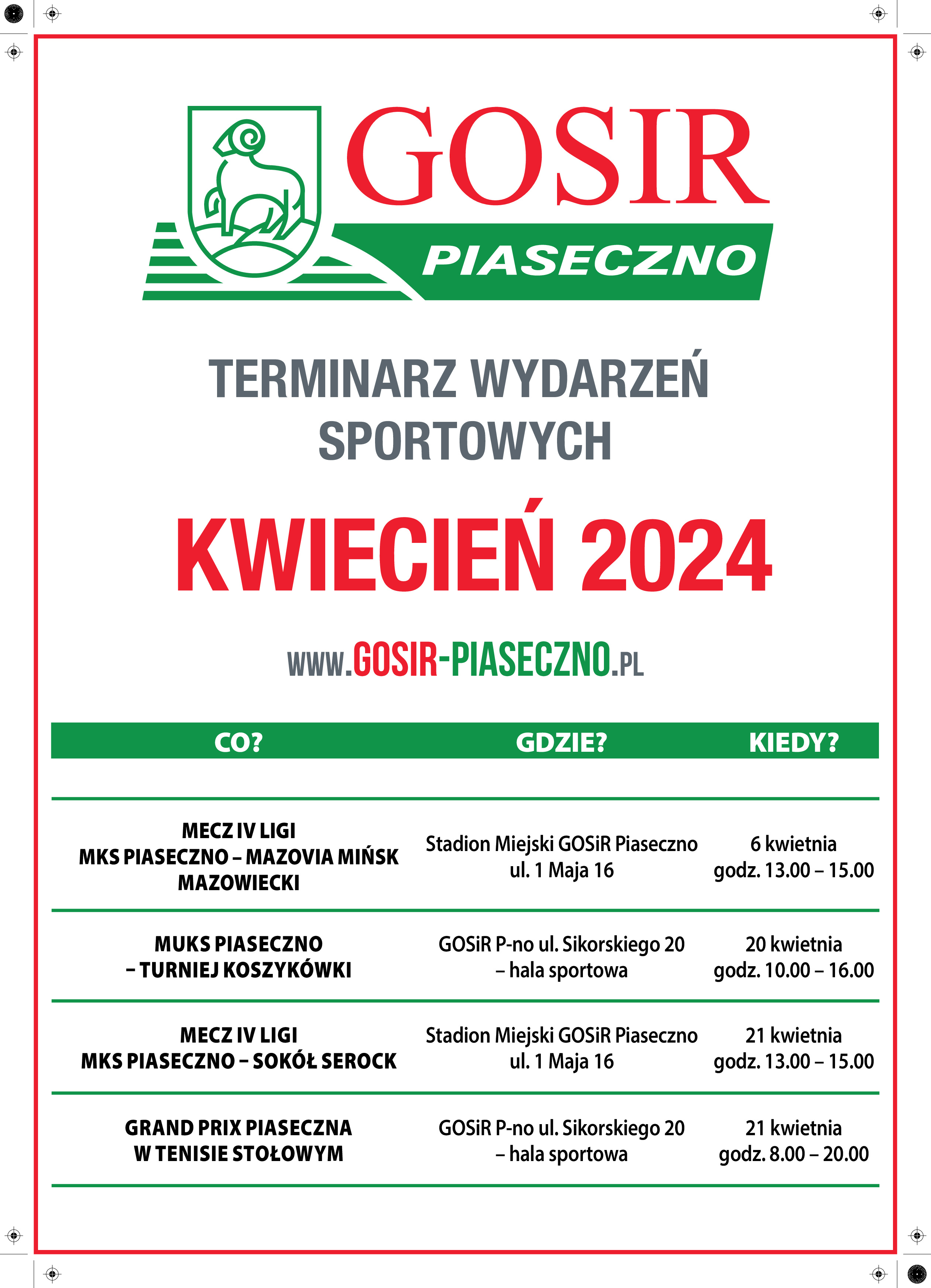 Poniżej aktualny grafik. Więcej informacji na stronie - Rolkowisko (gosir-piaseczno.pl)