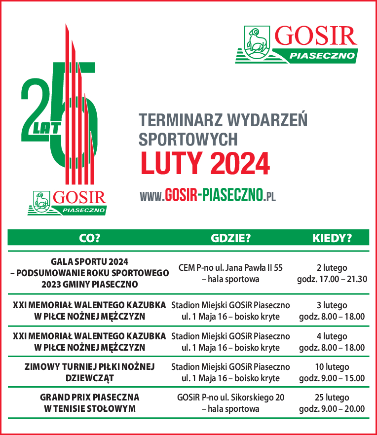 w biurze na Stadionie Miejskim GOSiR Piaseczno ul.1 go maja 16.
