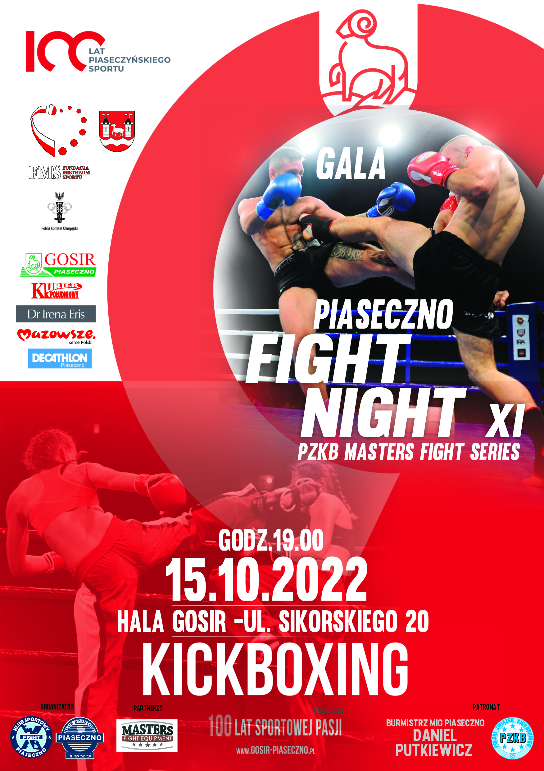 Gala Kickboxingu "Piaseczno Fight Night 11" odbędzie się 15 Października o godz. 19.00 w Hali GOSiR przy ul. Sikorskiego 20 w Piasecznie.