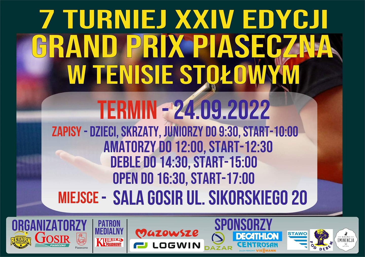 • Gramy na 22 stołach na dużej i świetnie wyposażonej sali GOSiR Piaseczno.