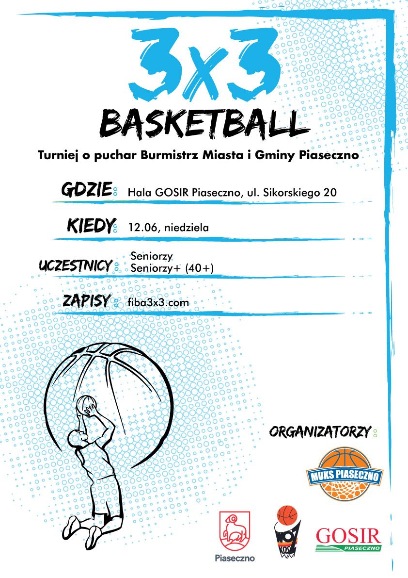 Już w najbliższą sobotę w sali Gminnego Ośrodka Sportu i Rekreacji odbędzie się turniej koszykówki 3x3, dyscypliny która znajduje sobie coraz więcej sympatyków w kraju i na świecie. Zawody rozegrane zostaną zarówno dla młodzieży jak i osób dorosłych. Patronat nad imprezą objął Burmistrz Miasta i Gminy Piaseczno. Zapraszamy sympatyków koszykówki do dopingowania drużyn, a drużyny do zgłaszania się do zawodów - więcej szczegółów na plakatach.