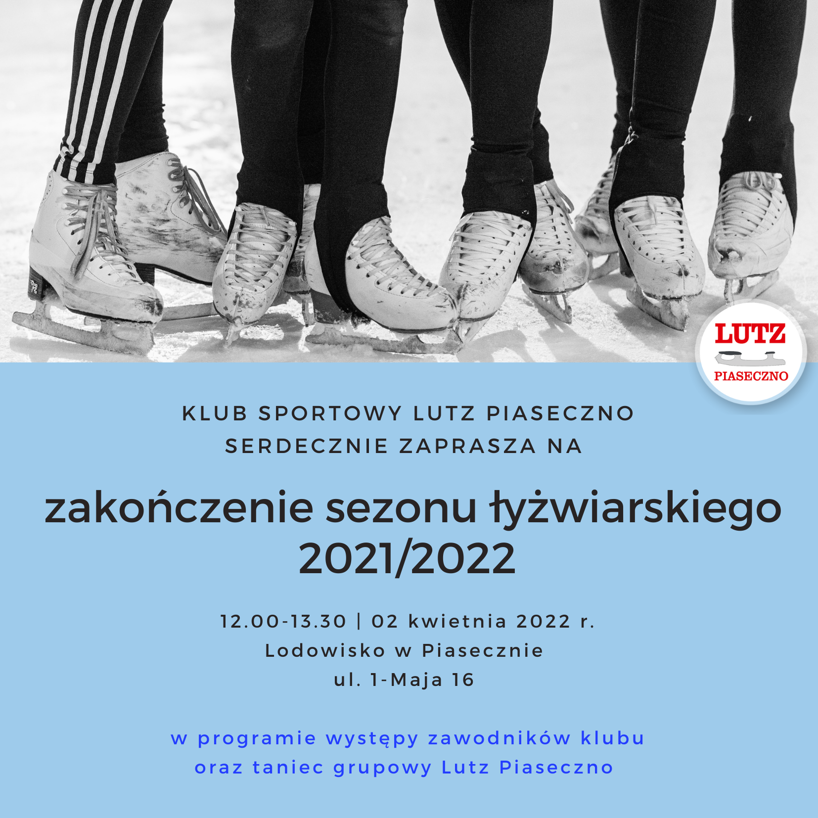 Zapraszamy na oficjalne zakończenie sezonu łyżwiarskiego 2021/2022 organizowane przez KS LUTZ Piaseczno.