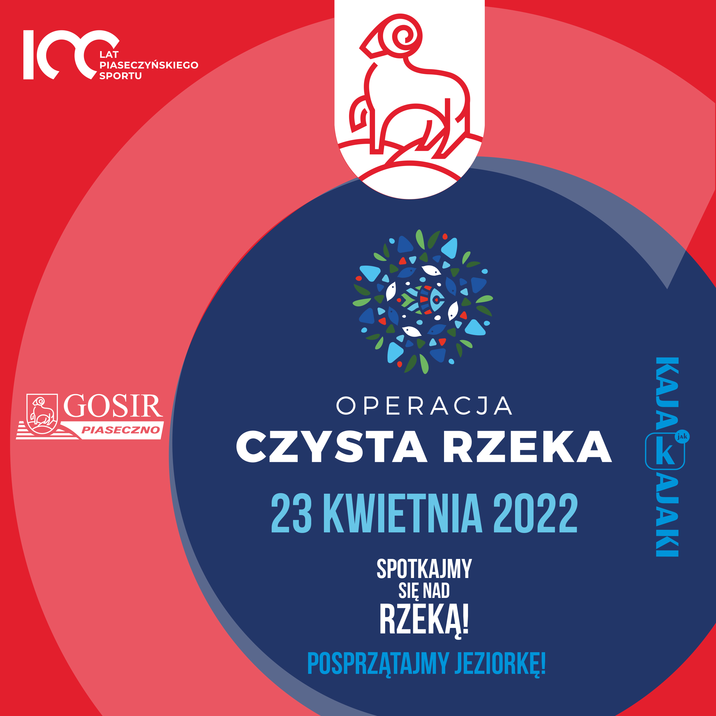 Zapraszamy wszystkich chętnych do wzięcia udziału w Operacji "Czysta Rzeka", której głównym celem jest posprzątanie rzeki Jeziorki. To wyjątkowe wydarzenie odbędzie się w sobotę 23 kwietnia. Sprzątanie rzeki rozpocznie się o godzinie 10:00 (zbiórka Stadion Miejski przy ul. 1 Maja 16 w Piasecznie), o godzinie 12:00 rozpocznie się sprzątanie brzegu (zbiórka na Górkach Szymona). Wszystko zakończy się wspólnym ogniskiem zaplanowanym na godzinę 14:00.