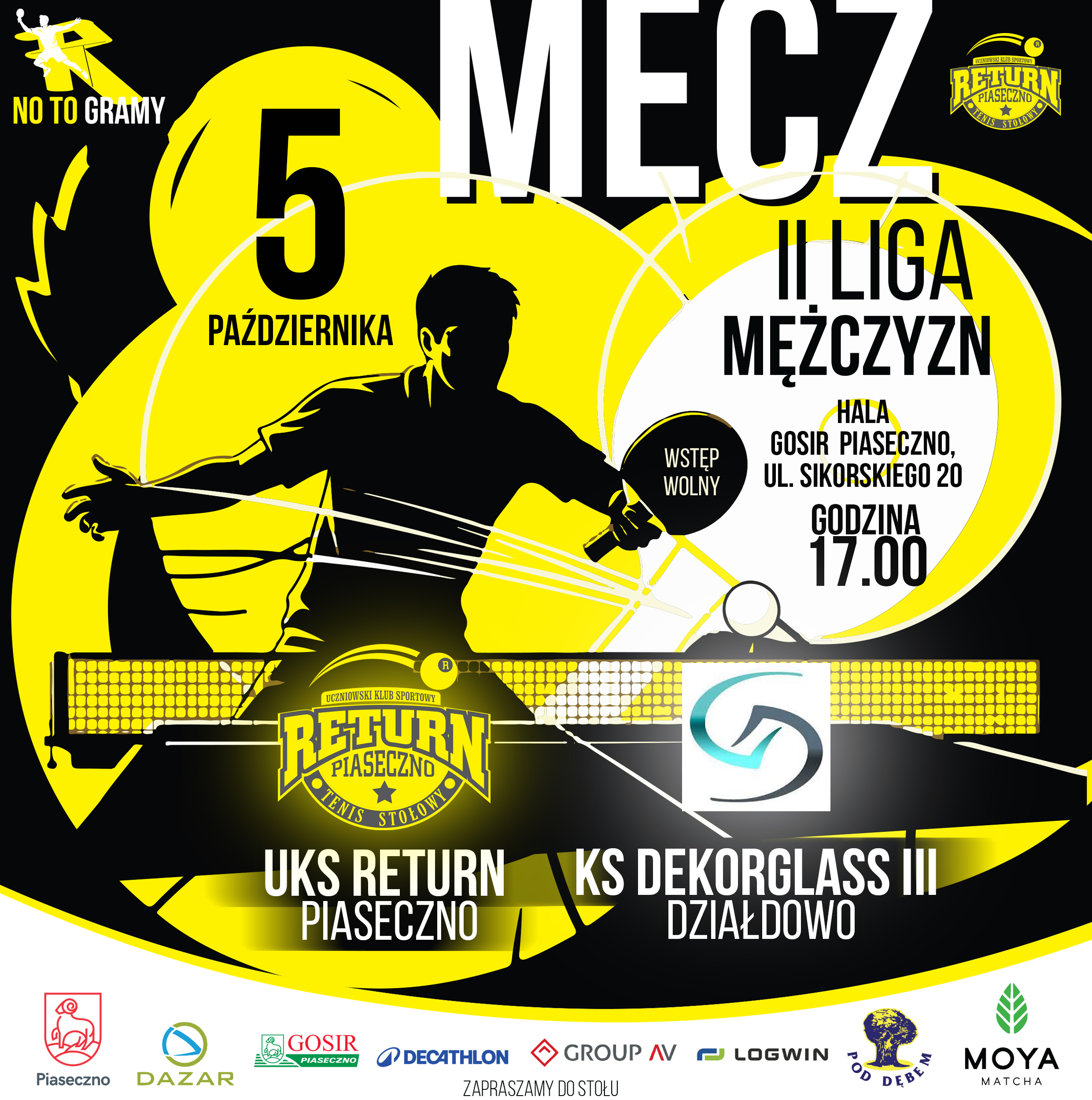 W niedzielę 5 października o godzinie 17:00 tenisiści stołowi UKS Return Piaseczno zainaugurują rozgrywki II ligi mężczyzn w sezonie 2025/2026. Ich rywalem będzie drużyna KS Dekorglass Działdowo. Zapowiada się zacięty mecz pełen wielu widowiskowych wymian.