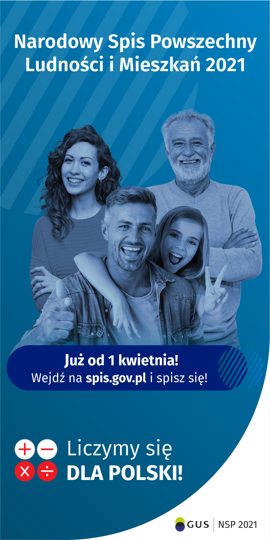 1 kwietnia 2021 roku rozpocznie się największe i najważniejsze badanie polskiej statystyki publicznej, czyli Narodowy Spis Powszechny Ludności i Mieszkań. Podczas spisu dowiemy się m.in. ilu nas jest, jacy jesteśmy i w jakich warunkach mieszkamy. Dane spisowe mają ogromne znaczenie dla przyszłości naszego kraju, województwa i gminy, dlatego tak ważne jest, żeby spisał się każdy z nas.