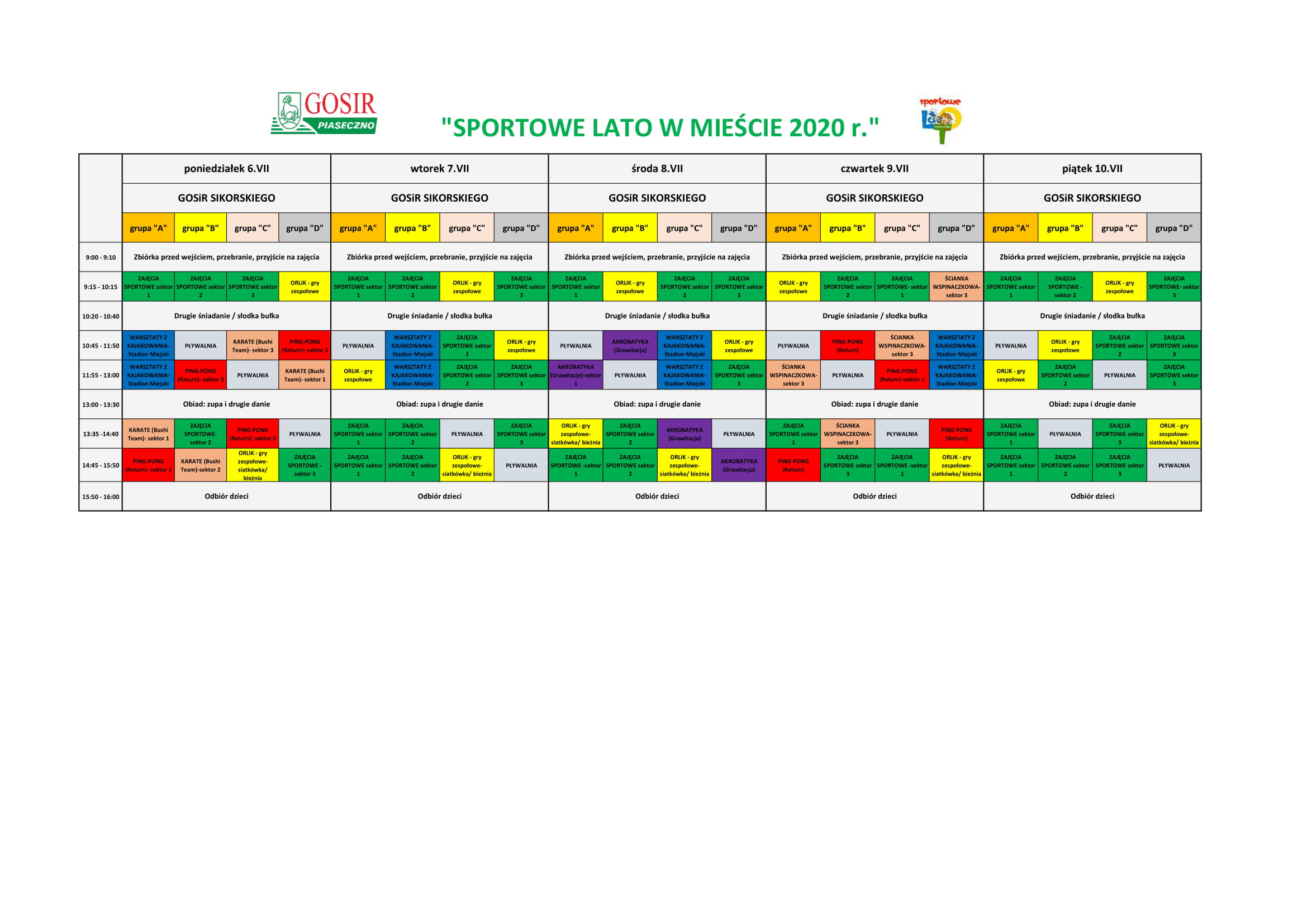 Poniżej przedstawiamy listy uczestników oraz plan zajęć na II turnus (13-17.07.2020r.) półkolonii "Sportowe Lato w Mieście 2020r."