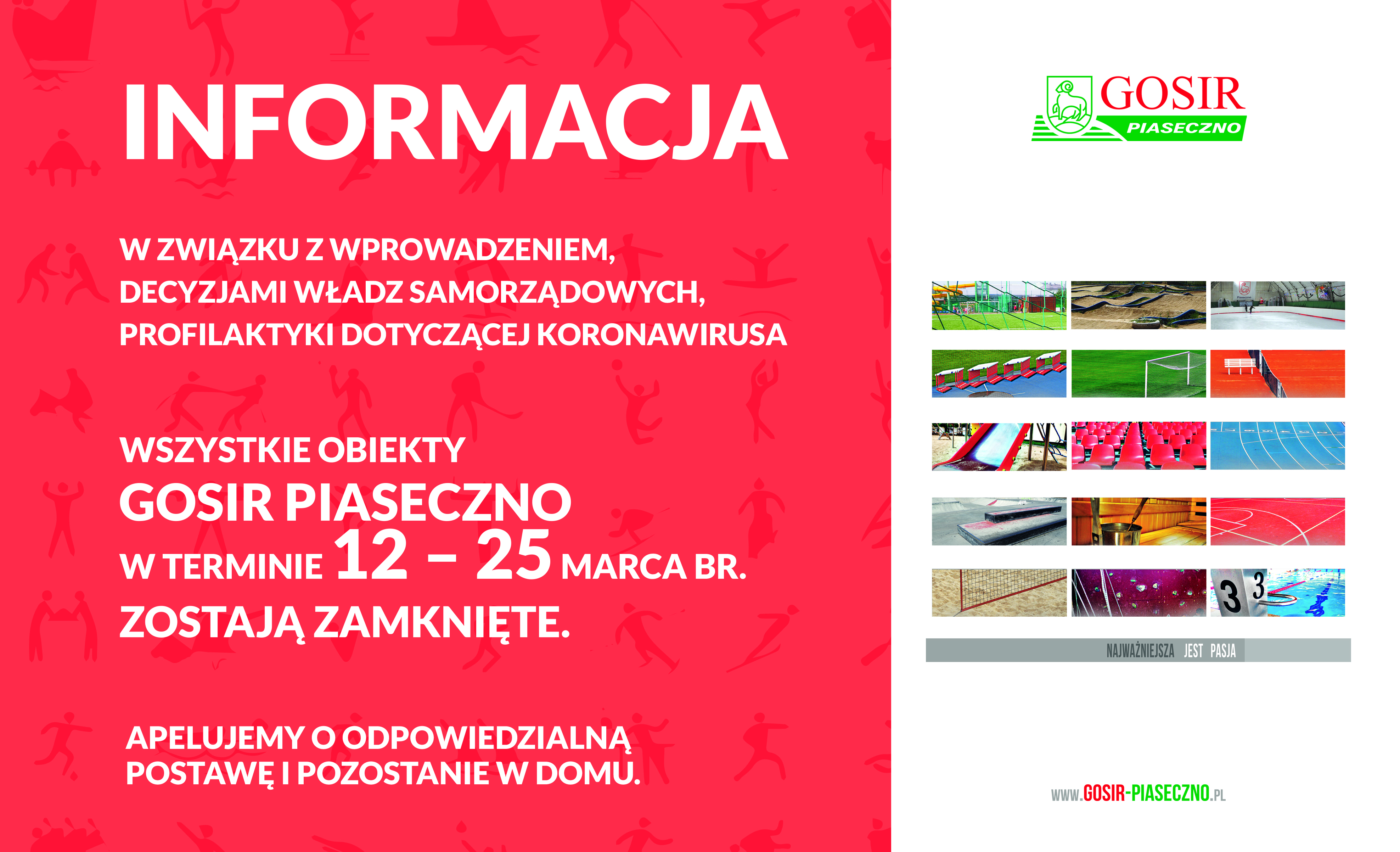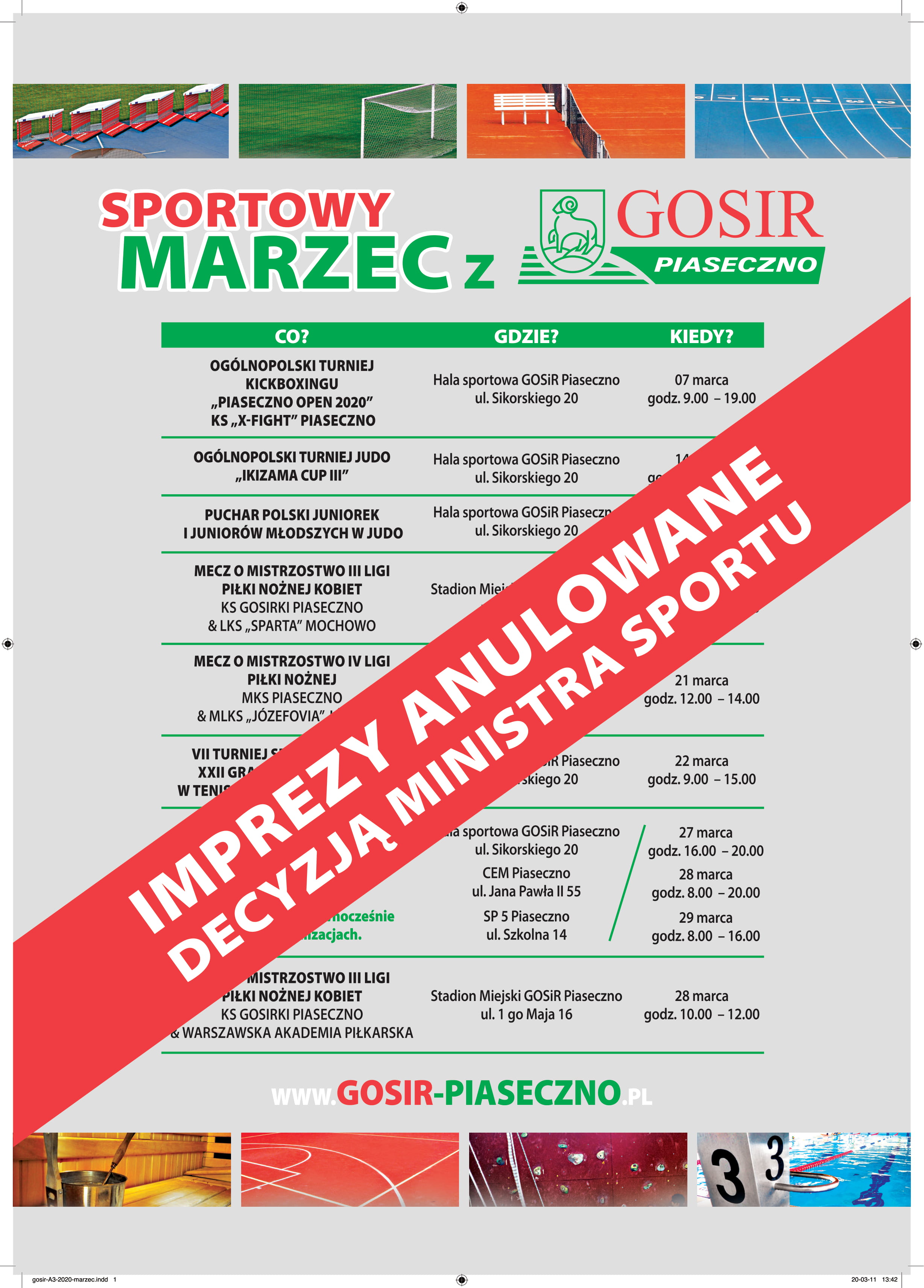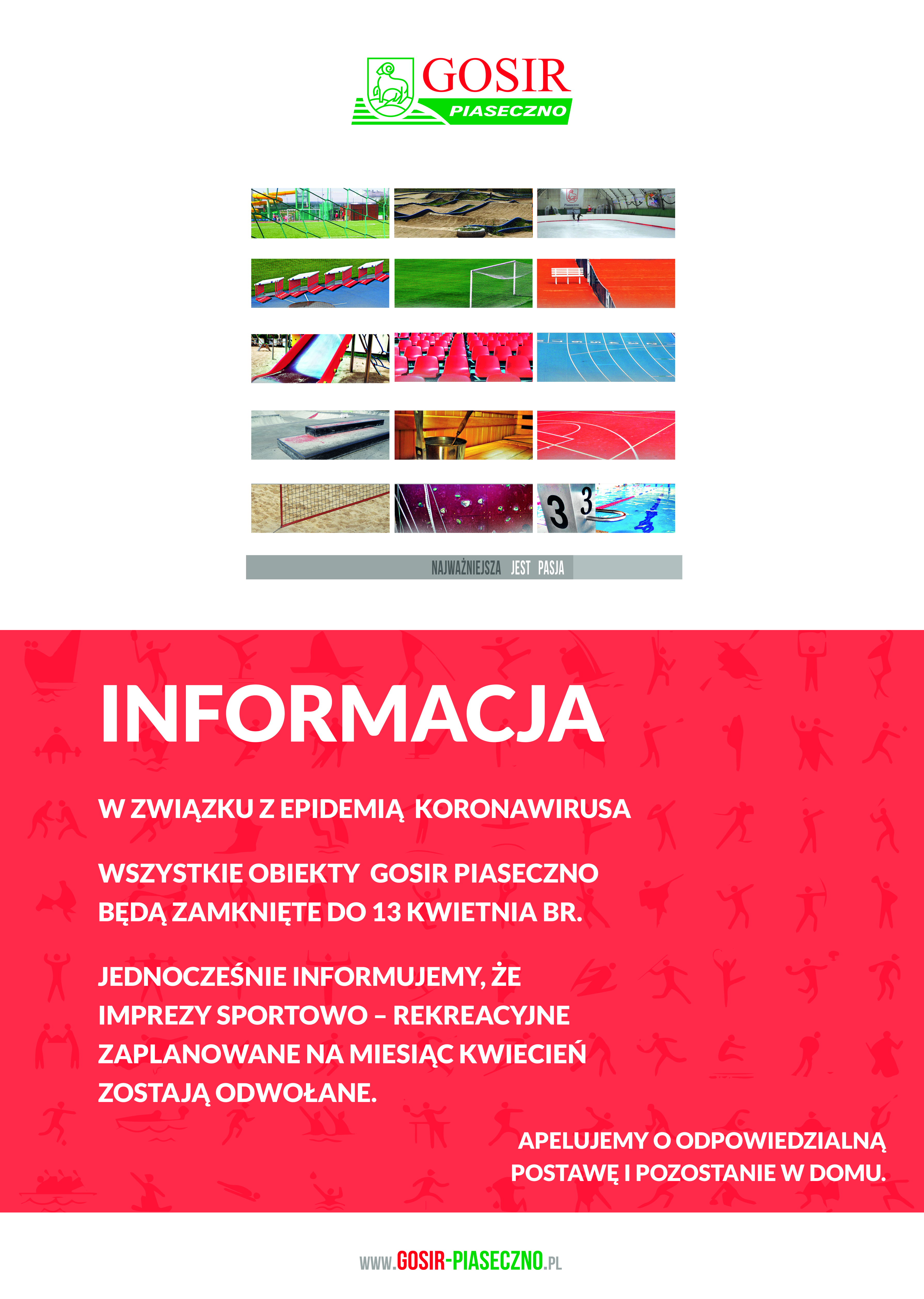 dyrektor GOSiR informuje, iż wszystkie imprezy masowe zostają odwołane.
