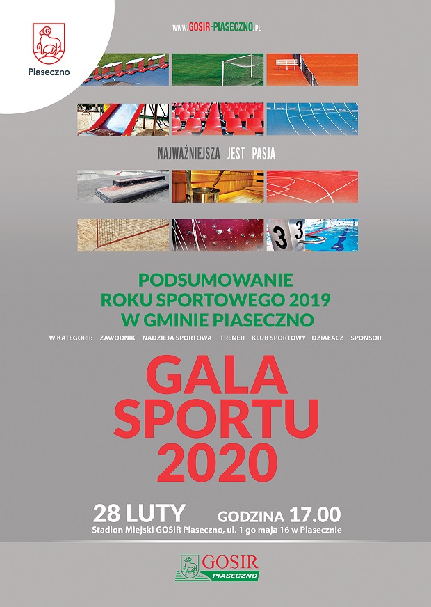 28 lutego br. na Stadionie Miejskim GOSiR Piaseczno, już po raz dwunasty zostanie zorganizowana Gala Sportu 2020 czyli Podsumowanie Roku Sportowego 2019 Gminy Piaseczno.